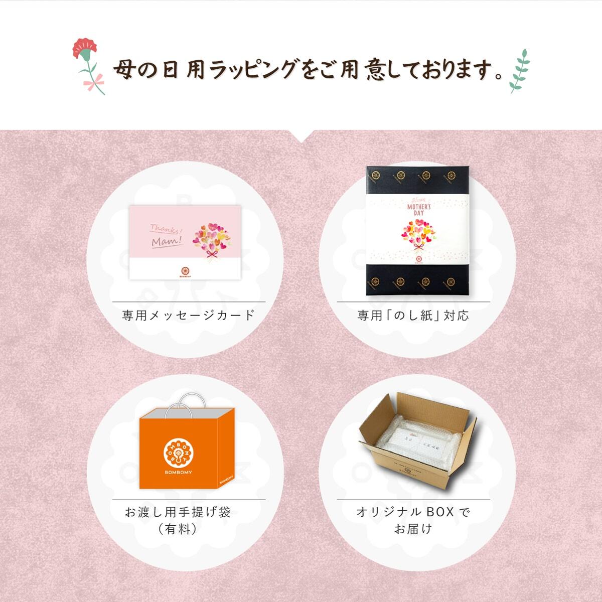 ※ギフト用ラッピングをご希望の方は、注文確認画面「ラッピング・のし[変更]」から”母の日ラッピング(のし紙)”をお選びください。